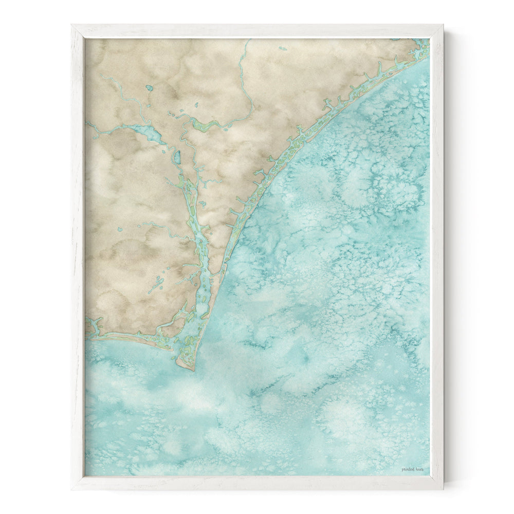 A watercolor giclee print of Cape Fear, North Carolina. Reproduced on high quality, acid-free cotton paper with archival inks for lasting color.