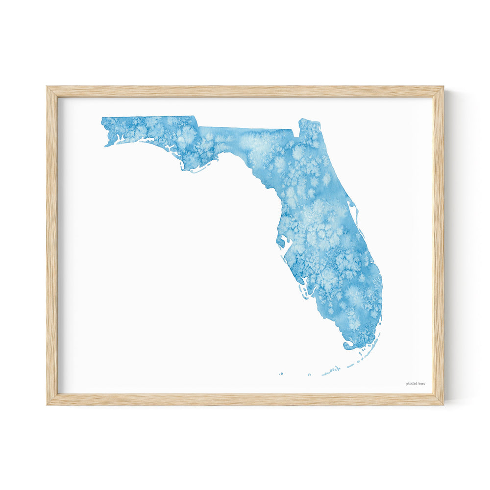 An 11x14 inch watercolor giclee print of Florida. Reproduced on high quality, acid-free cotton paper with archival inks for lasting color.
