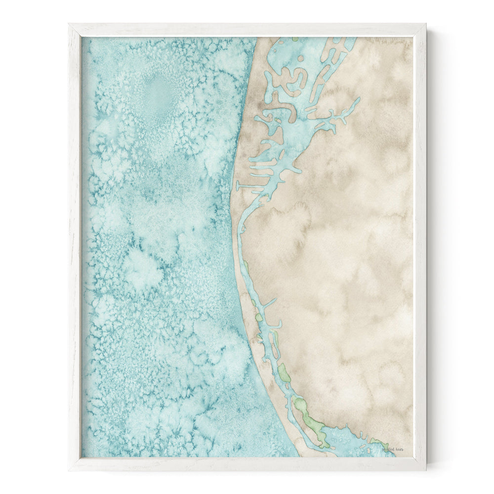 A watercolor giclee print of Indian Rocks Beach, Florida. Reproduced on high quality, acid-free cotton paper with archival inks for lasting color.