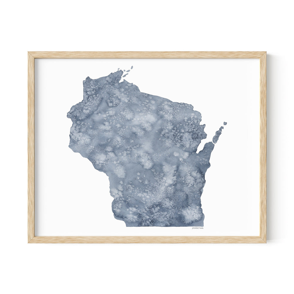 An 11x14 inch watercolor giclee print of Wisconsin. Reproduced on high quality, acid-free cotton paper with archival inks for lasting color.