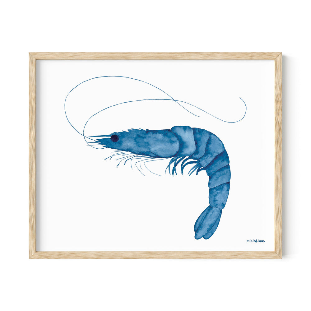 Blue and white never goes out of style. The All Blues Shrimp is painted in classic blue watercolor. Reproduced on beautiful, thick cotton paper, this giclee print looks like an original watercolor painting. Mixes and matches perfectly with the rest of the All Blues Collection