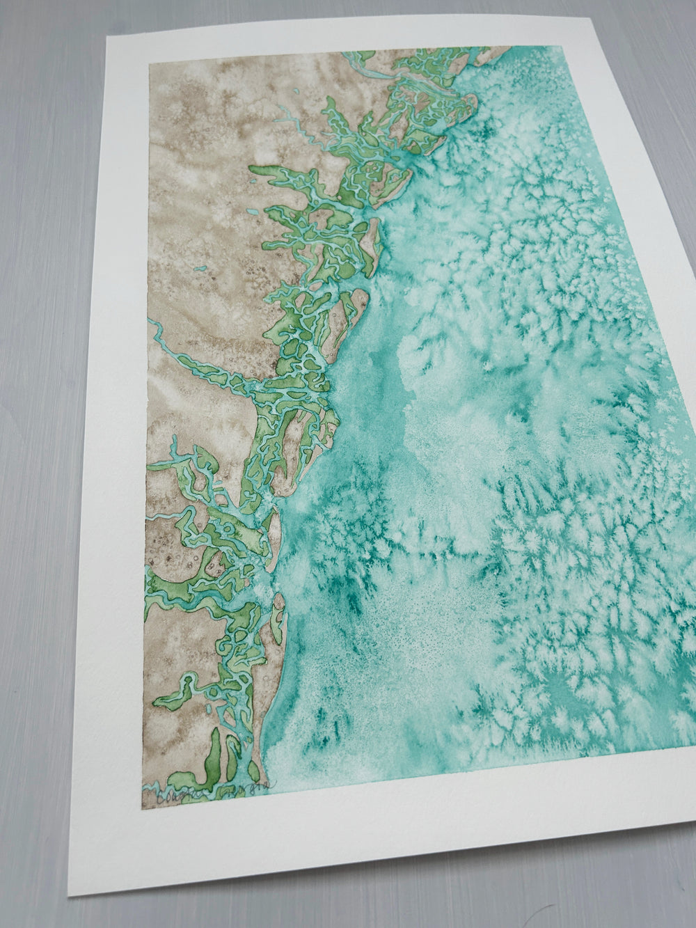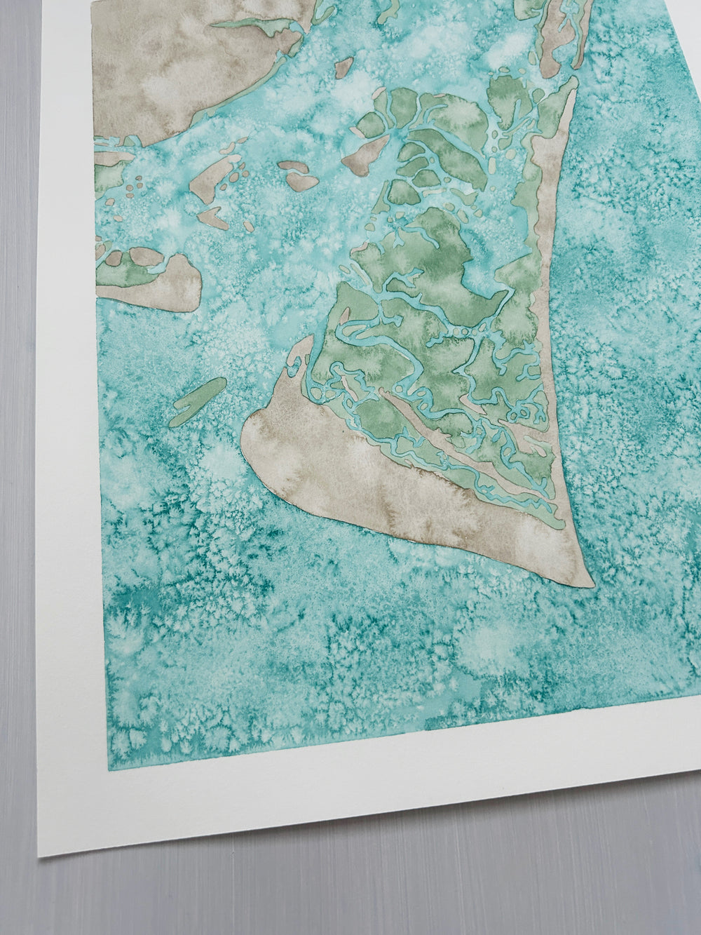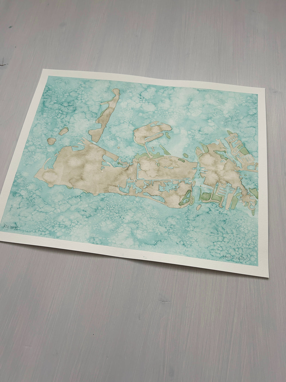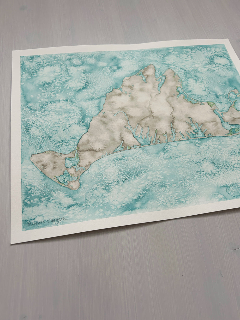 Original paintings are watercolor on Canson cold press paper. Looking for prints instead? Click here for Coastal Watercolor Map Prints and here for State Silhouette Map Prints.