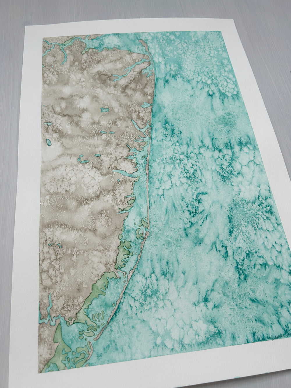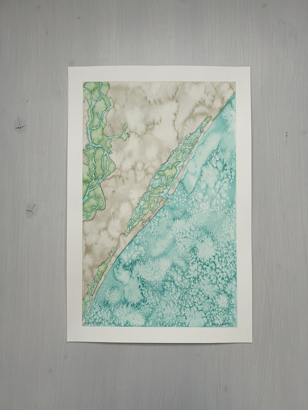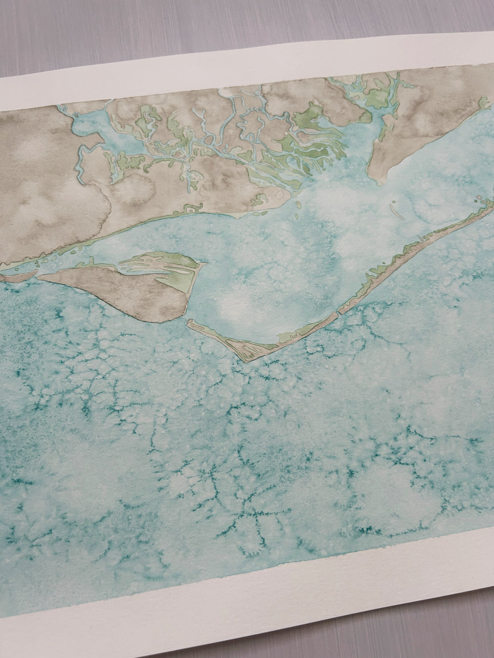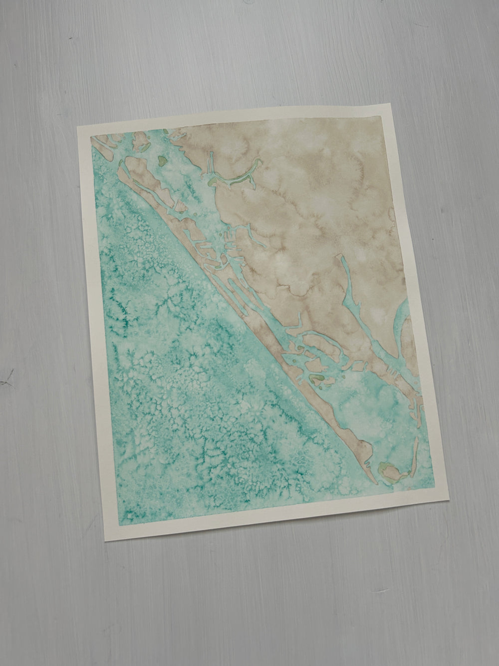 Original paintings are watercolor on Canson cold press paper. Looking for prints instead? Click here for Coastal Watercolor Map Prints and here for State Silhouette Map Prints.