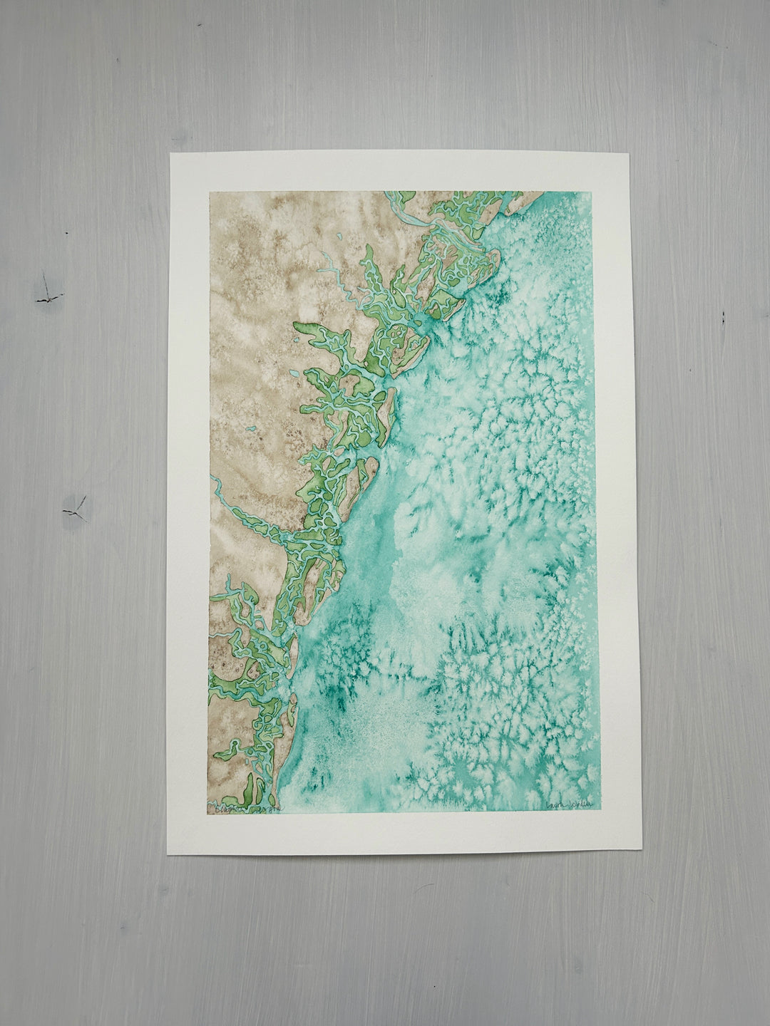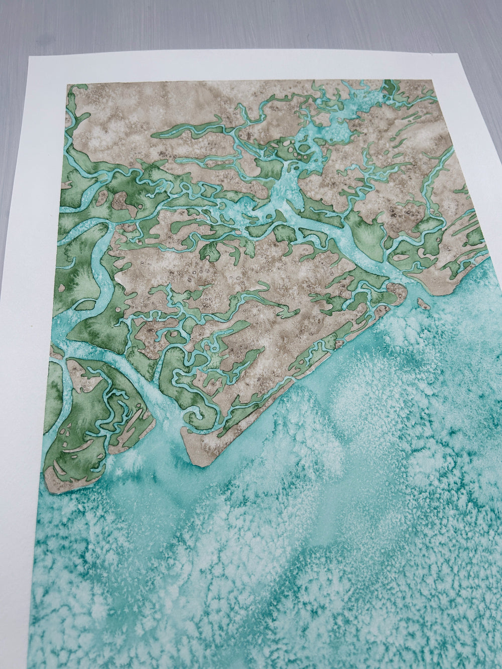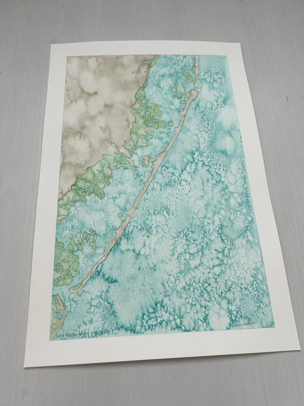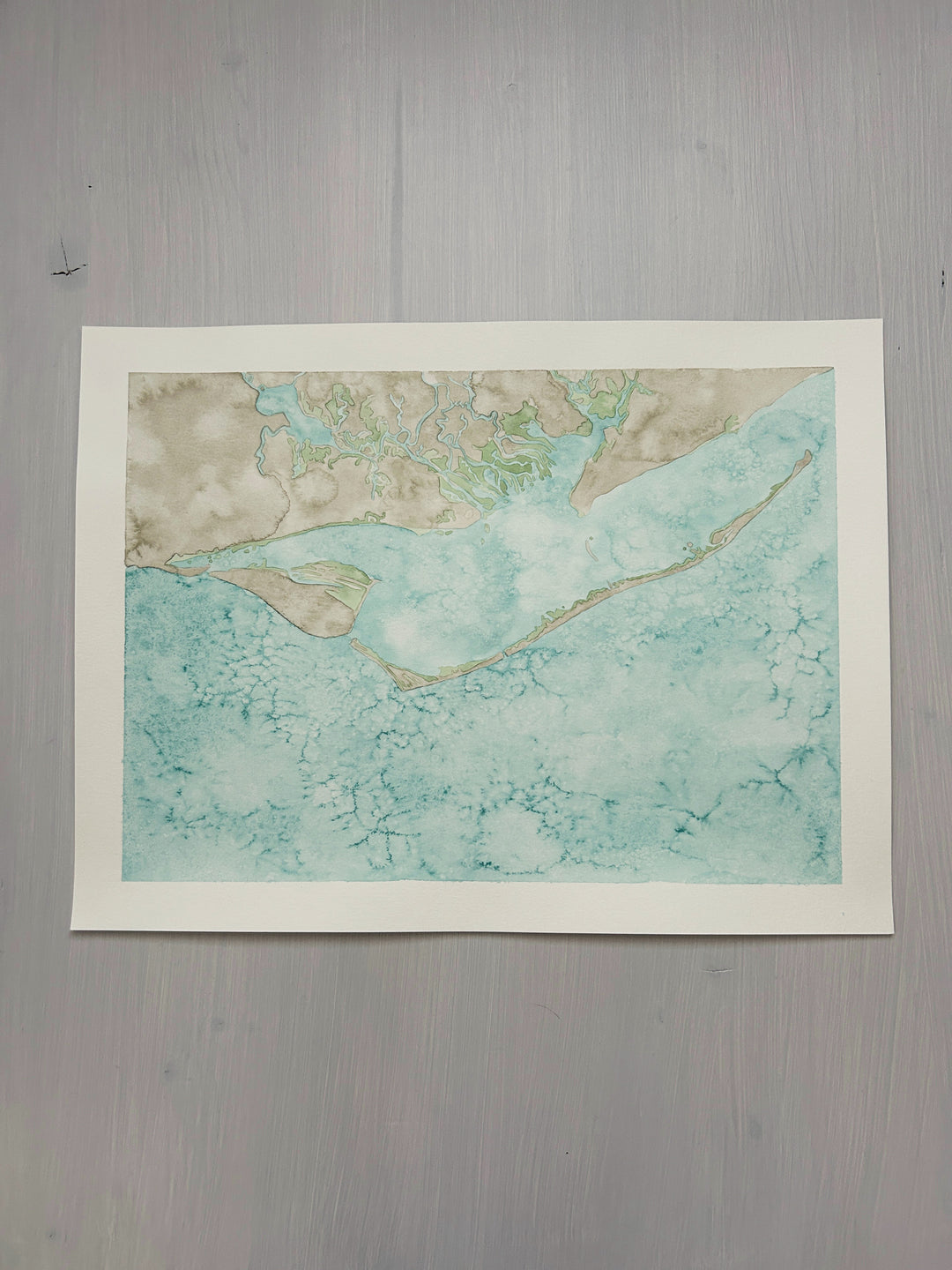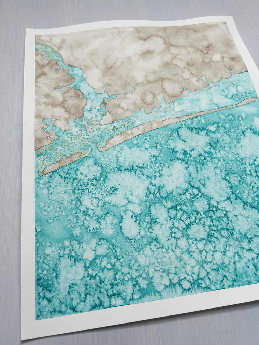 Original paintings are watercolor on Canson cold press paper. Looking for prints instead? Click here for Coastal Watercolor Map Prints and here for State Silhouette Map Prints.