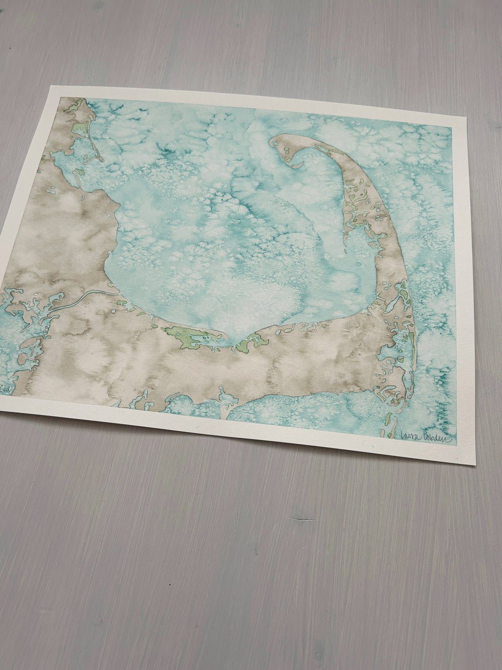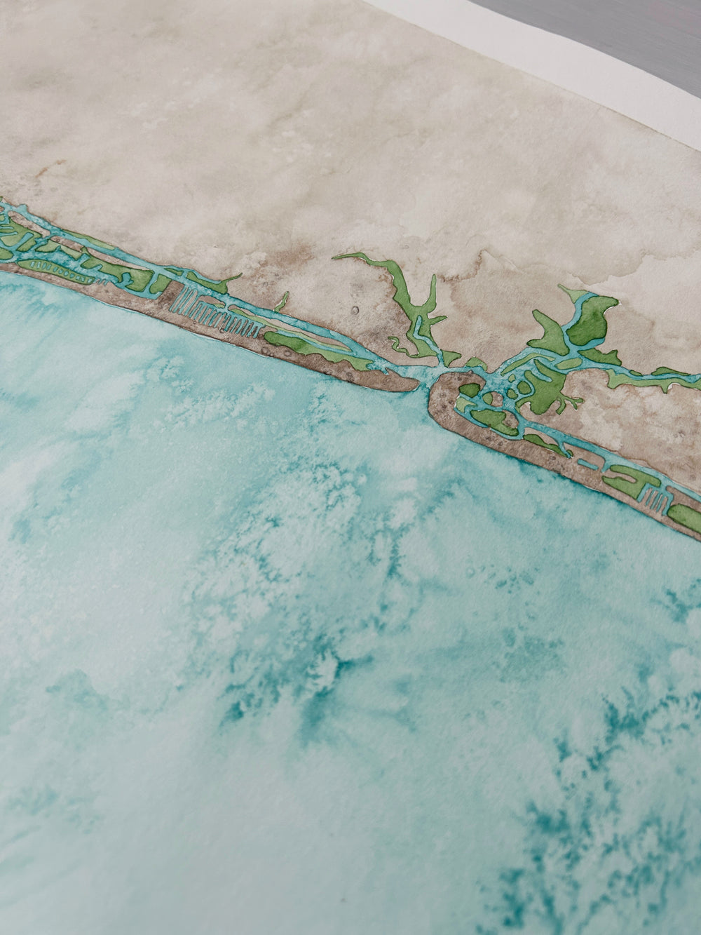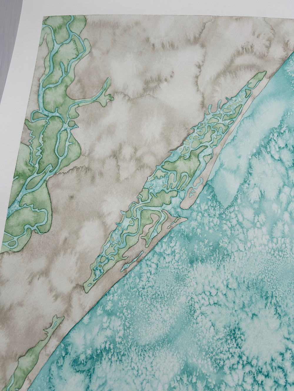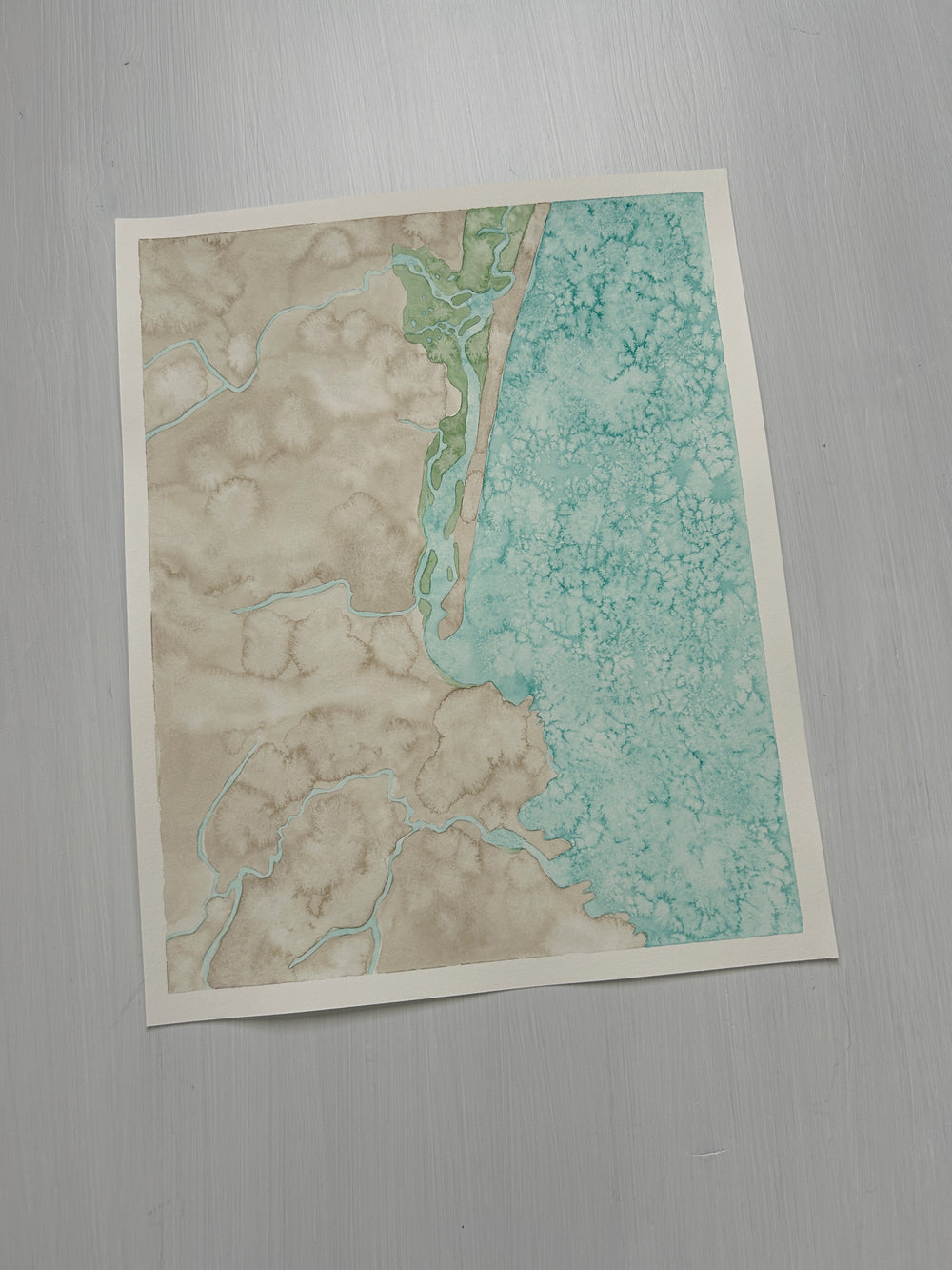 Original paintings are watercolor on Canson cold press paper. Looking for prints instead? Click here for Coastal Watercolor Map Prints and here for State Silhouette Map Prints.