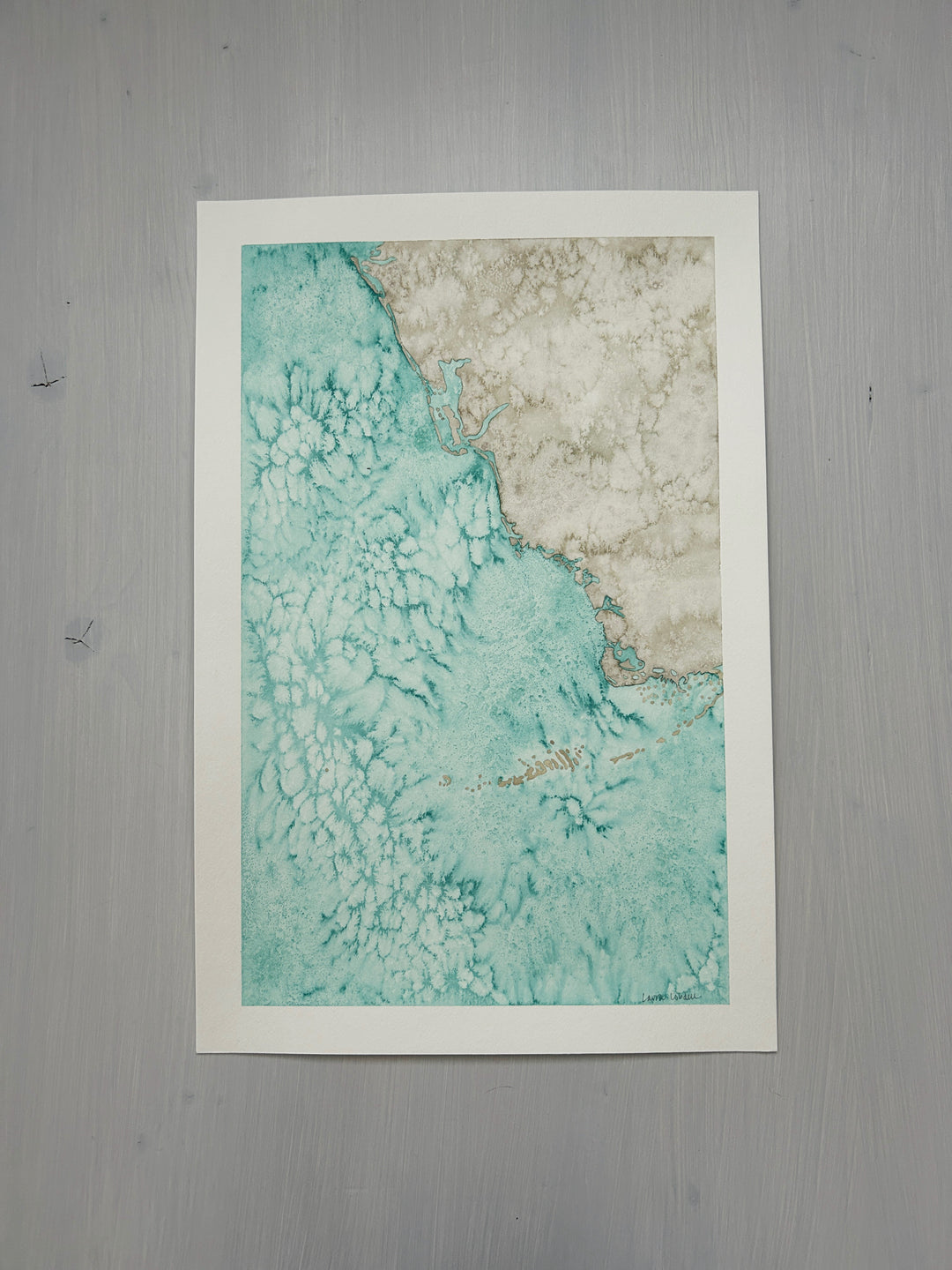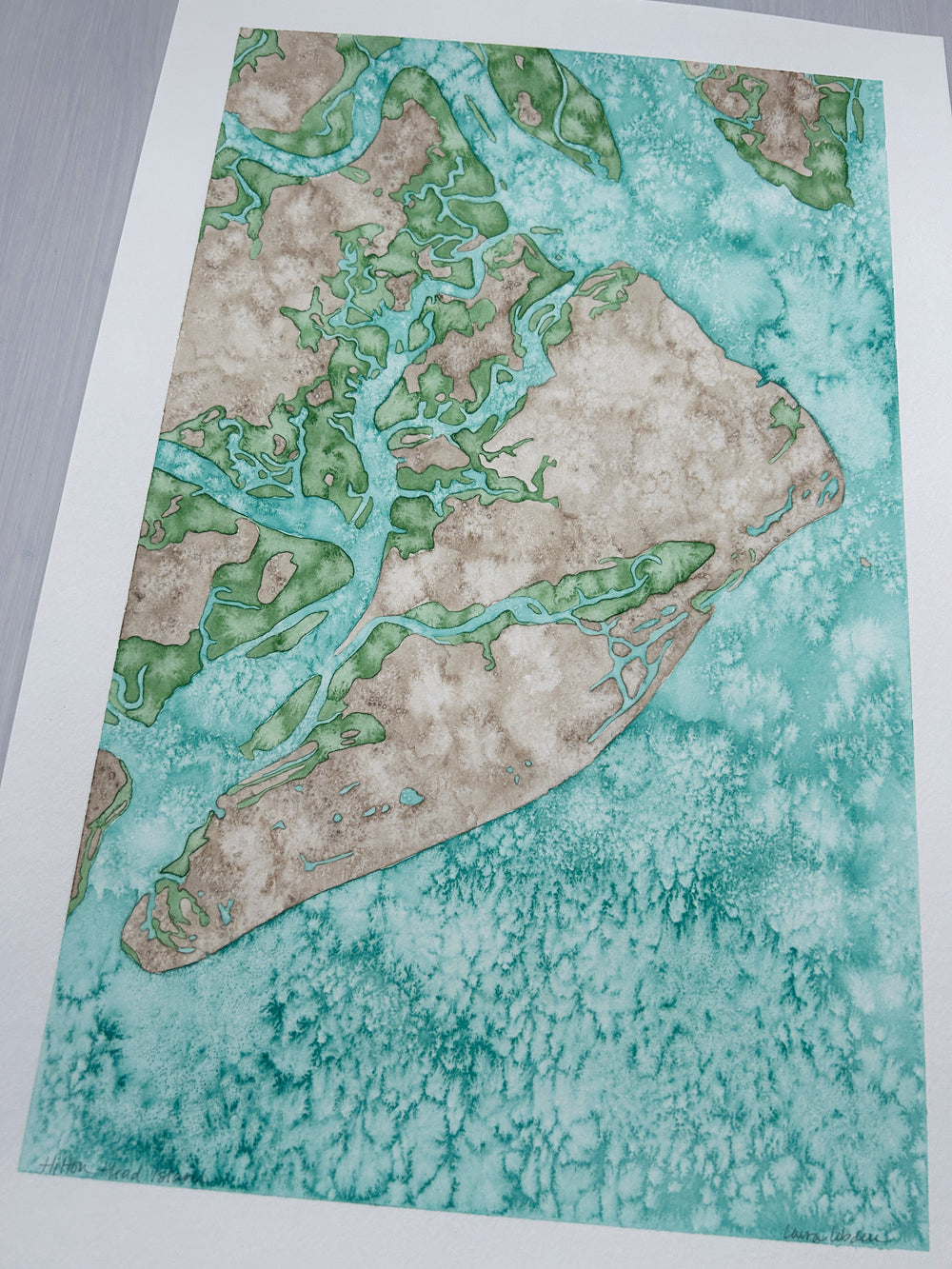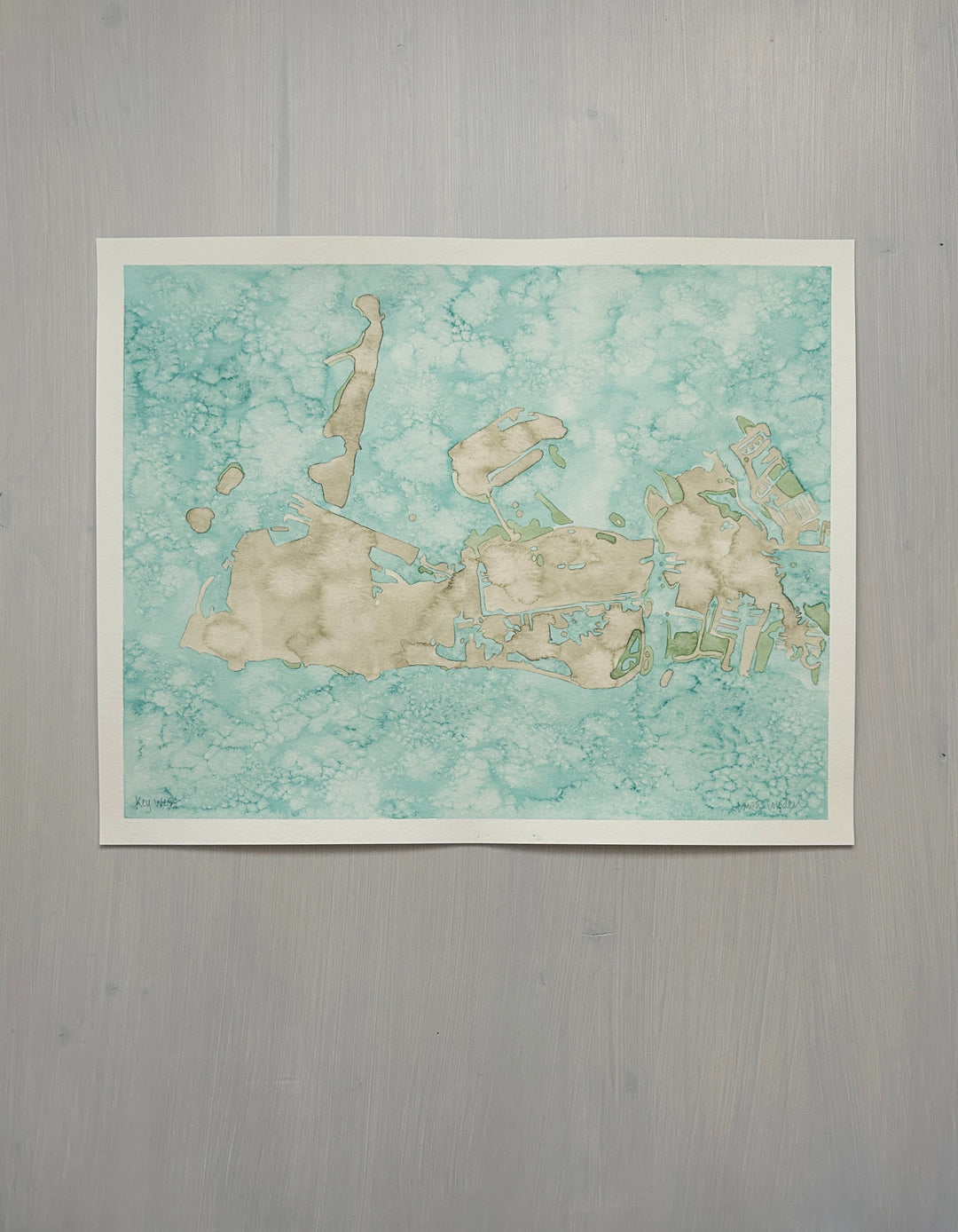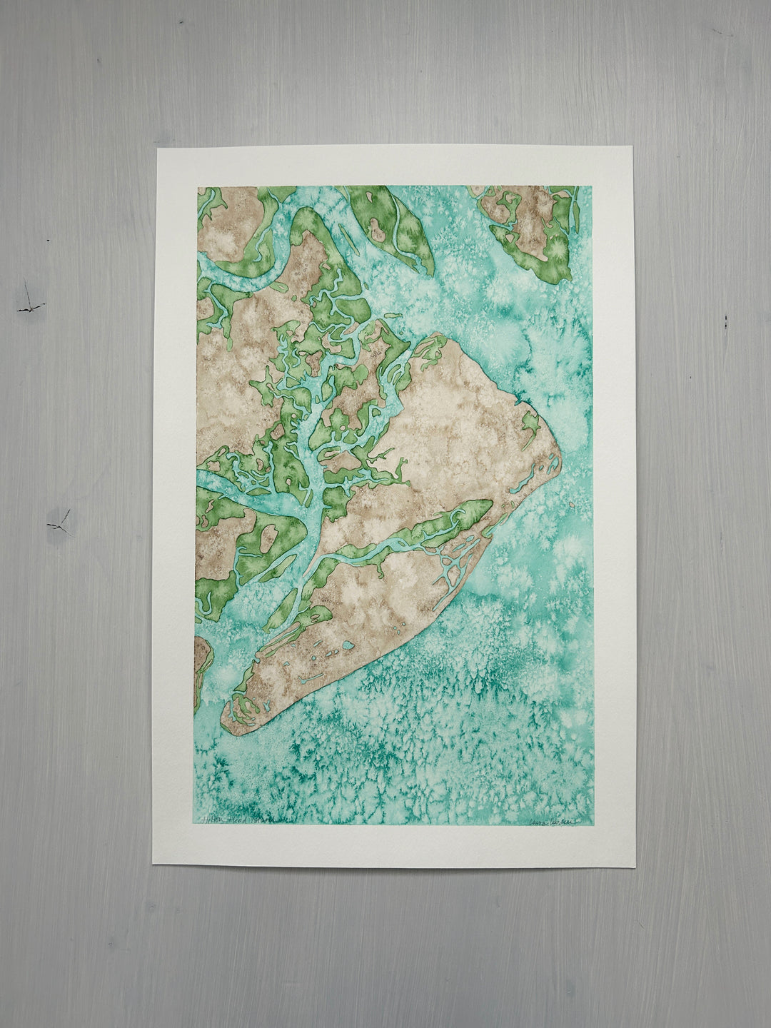 Original paintings are watercolor on Canson cold press paper. Looking for prints instead? Click here for Coastal Watercolor Map Prints and here for State Silhouette Map Prints.