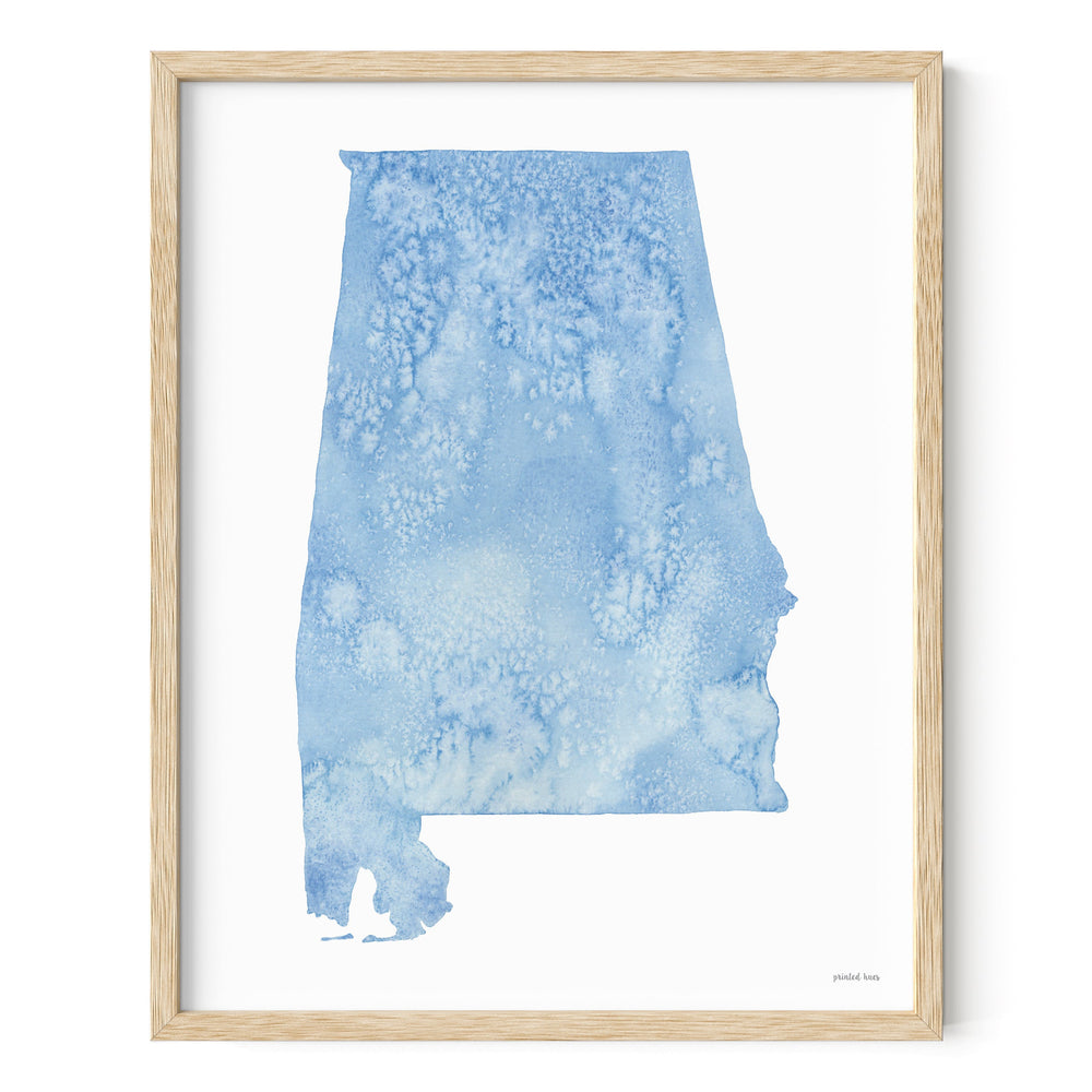 An 11x14 inch watercolor giclee print of Alabama. Reproduced on high quality, acid-free cotton paper with archival inks for lasting color.