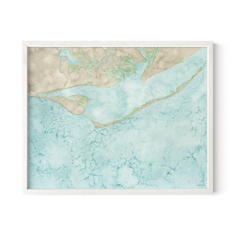 A watercolor giclee print of Apalachicola, Florida. Reproduced on high quality, acid-free cotton paper with archival inks for lasting color.