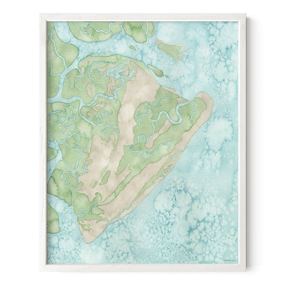 A watercolor giclee print of Ossabaw Island, Georgia. Reproduced on high quality, acid-free cotton paper with archival inks for lasting color.