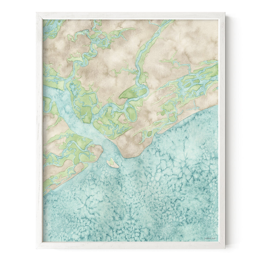 A watercolor giclee print of Seabrook Island, South Carolina. Reproduced on high quality, acid-free cotton paper with archival inks for lasting color.