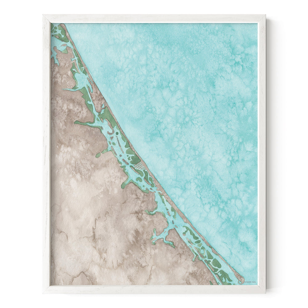 A watercolor giclee print of Topsail Island, North Carolina. Reproduced on high quality, acid-free cotton paper with archival inks for lasting color.