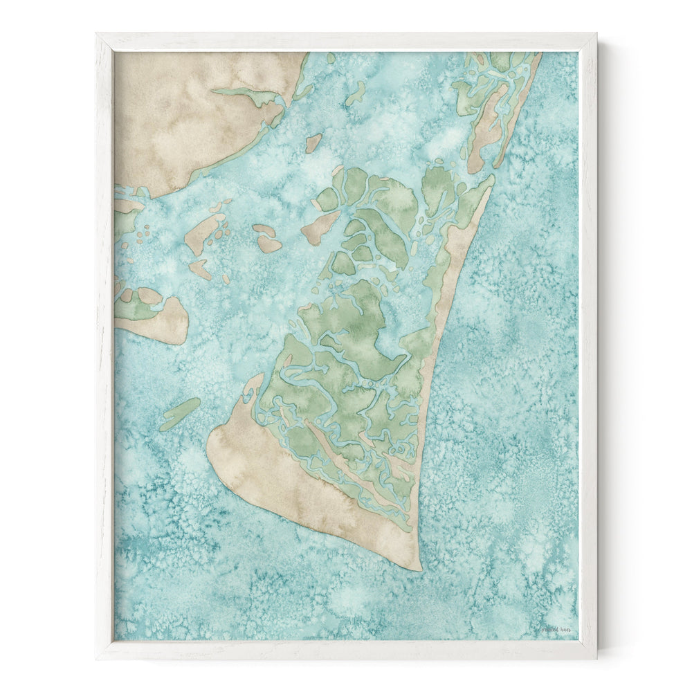 A watercolor giclee print of Bald Head Island, North Carolina. Reproduced on high quality, acid-free cotton paper with archival inks for lasting color.