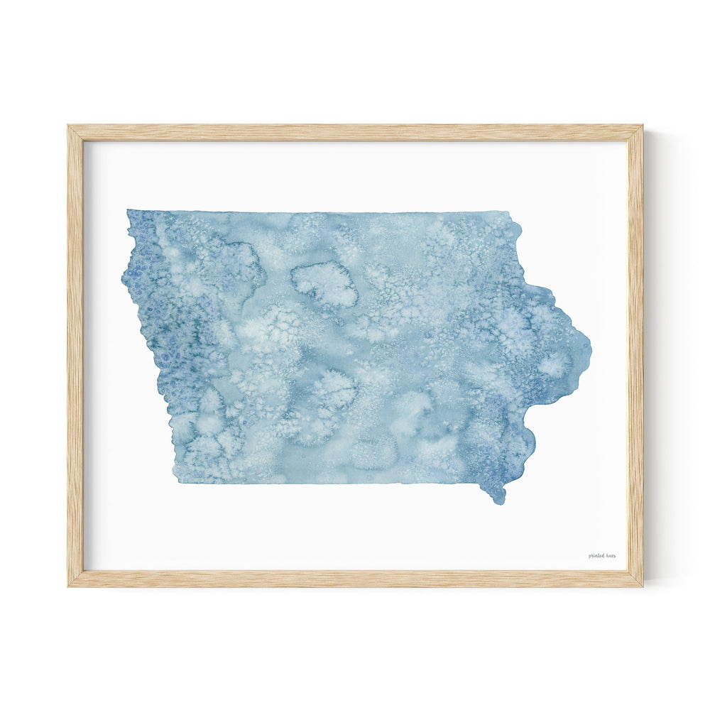 An 11x14 inch watercolor giclee print of Iowa. Reproduced on high quality, acid-free cotton paper with archival inks for lasting color.