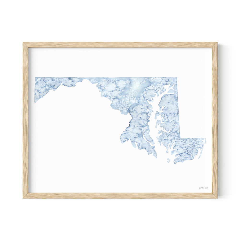 An 11x14 inch watercolor giclee print of Maryland. Reproduced on high quality, acid-free cotton paper with archival inks for lasting color.