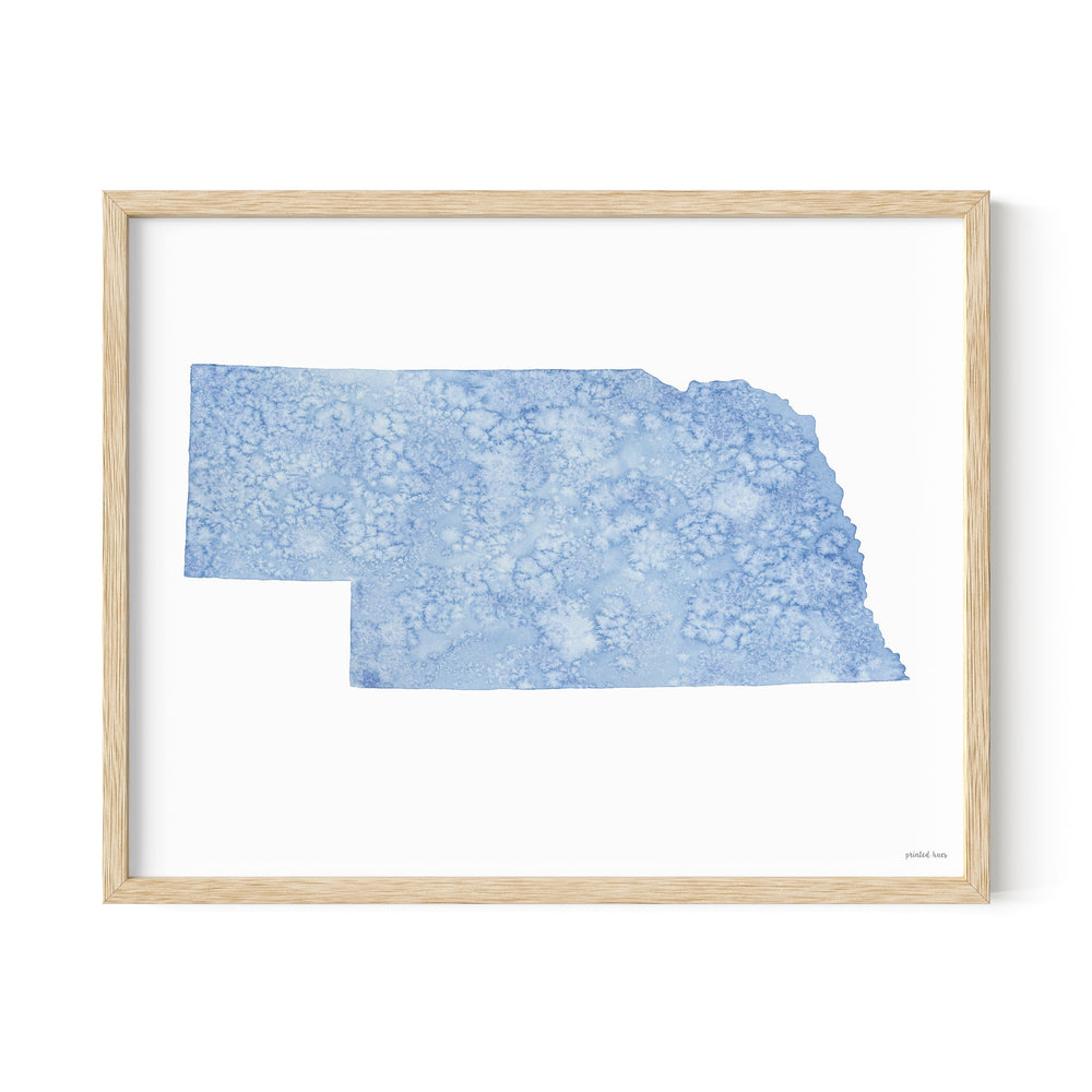 An 11x14 inch watercolor giclee print of Nebraska. Reproduced on high quality, acid-free cotton paper with archival inks for lasting color.
