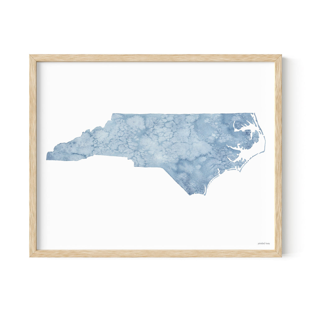 An 11x14 inch watercolor giclee print of North Carolina. Reproduced on high quality, acid-free cotton paper with archival inks for lasting color.