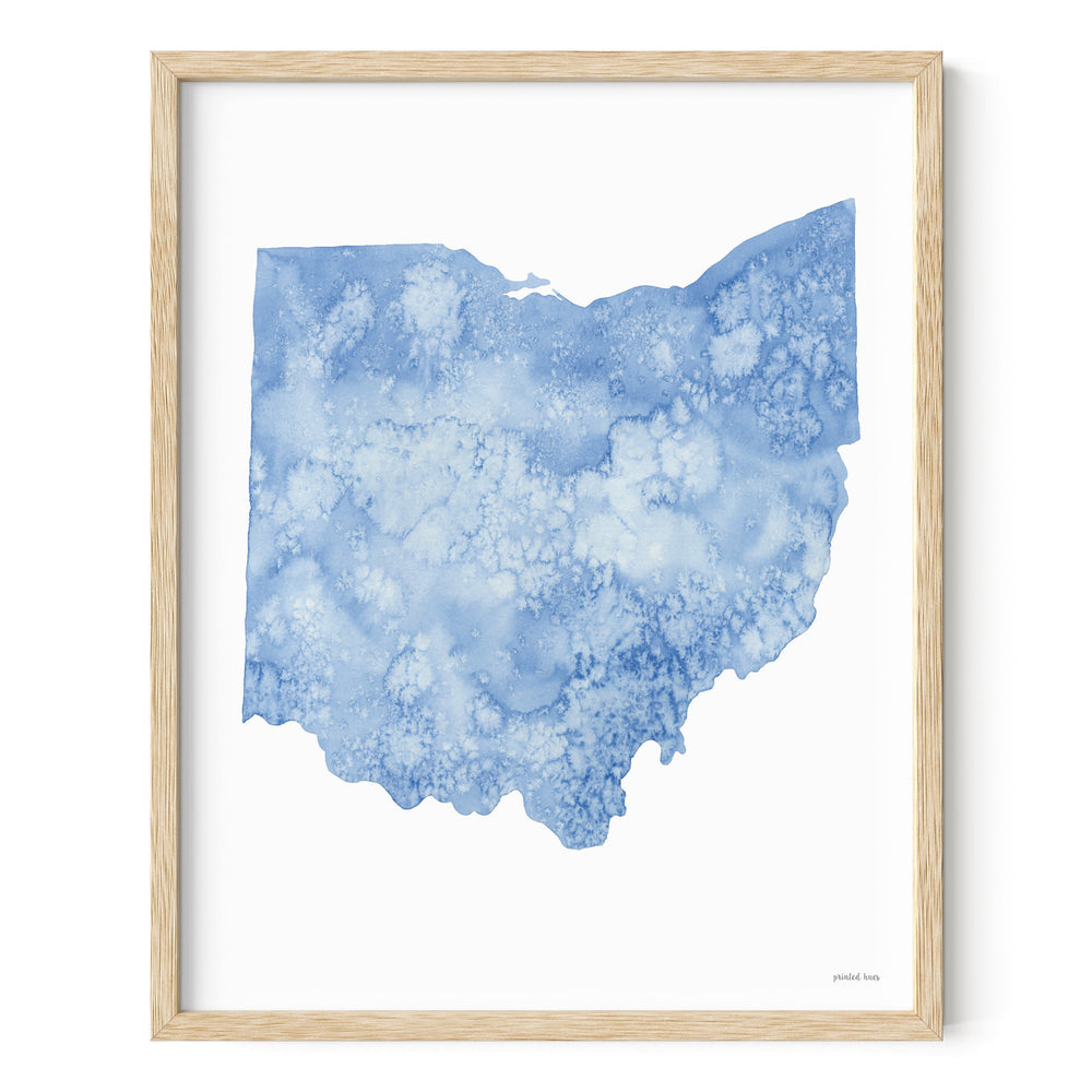 An 11x14 inch watercolor giclee print of Ohio. Reproduced on high quality, acid-free cotton paper with archival inks for lasting color.