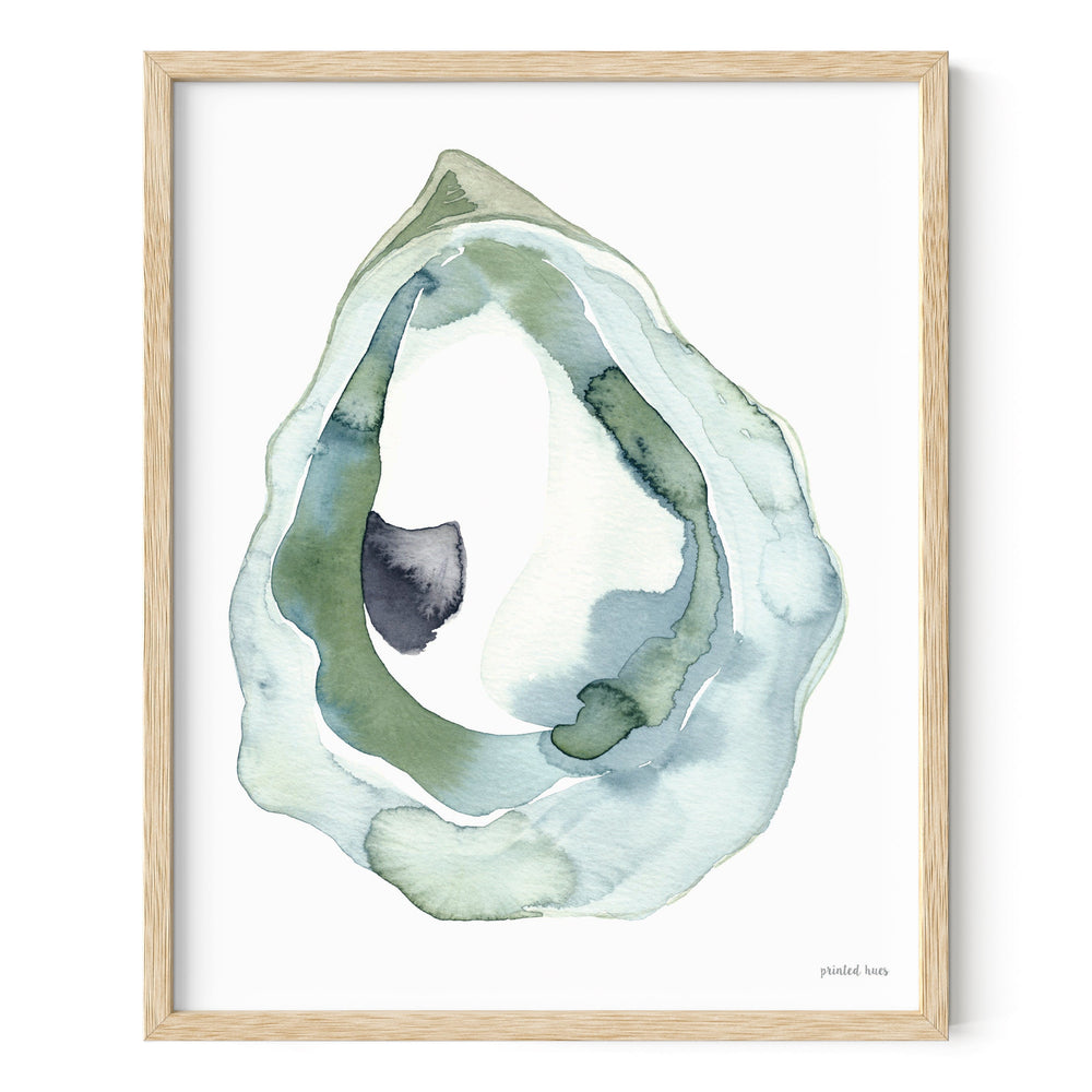 The most beautiful colors dance across the inside of every oyster shell. I painted the Sage Oyster with the palest blues and rich olive green.